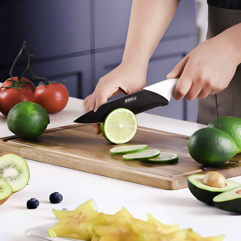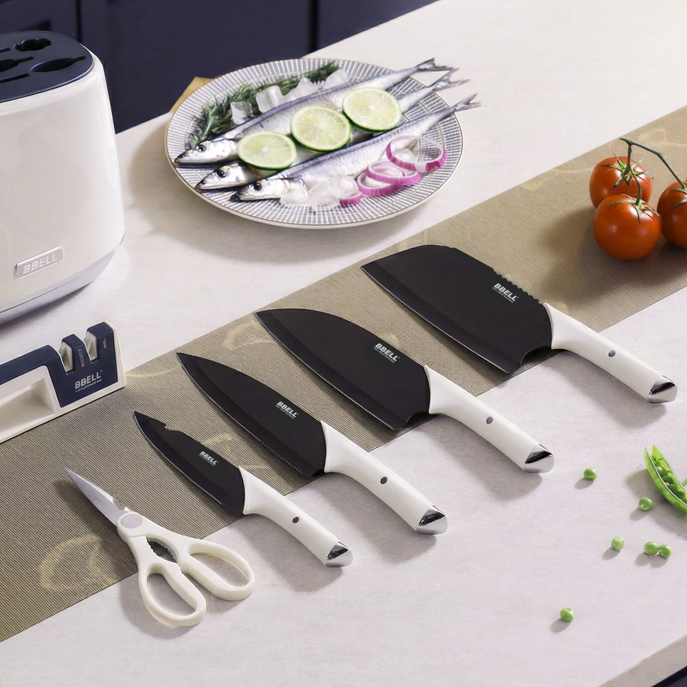 Upgrade your kitchen with the knife set that brings space-tech into everyday cooking. BBELL infuses Titanium (Ti) into the blade surface — not paint, not spray — for a knife that’s more antibacterial, more rust-resistant, and sharp for longer.